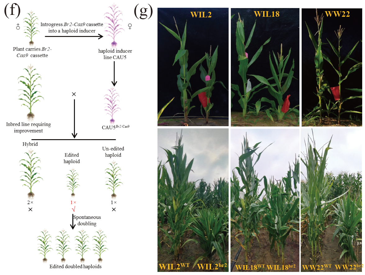 The "semi-dwarf" breeding in crops had triggered the global Green Revolution. However, to date, there is still a lack of practically applicable dwarfing strategies in maize. In this study, through selective genome editing of the Br2 gene, 7 alleles with different (continuous) dwarfing effects were created, among which two genotypes can reduce plant height without yield penalty. A large number of hybridization experiments showed that this strategy can create continuous dwarfing plant for almost any maize genetic background. By developing the Br2-based "Haploid Inducer Mediated Genome Editing (IMGE)" system, researchers could rapid improvement of maize plant height within two generations, that significantly enhancing breeding efficiency.
