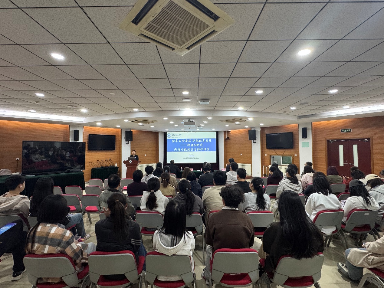 本次活动特邀北京交通大学网络空间安全学院刘吉强教授做专题授课。刘吉强以“筑牢安全基石,护航数字发展——构建AI时代网络与数据安全防护体系”为题,从总体国家安全观出发,重点对网络安全和保密相关法律法规进行释义,并围绕AI时代安全保密的新形势,通过一系列典型案例,深入浅出地阐述了新时代科技领域面临的严峻安全挑战,为参会人员上了一堂生动深刻的国家安全专题课。在研讨交流环节,围绕如何在日常学习科研中提高安全保密意识展开讨论,参会人员充分认识到应严格遵守实验数据保护、网络信息安全等方面相关规定,进一步凝聚了“国家安全、人人有责”的共识。