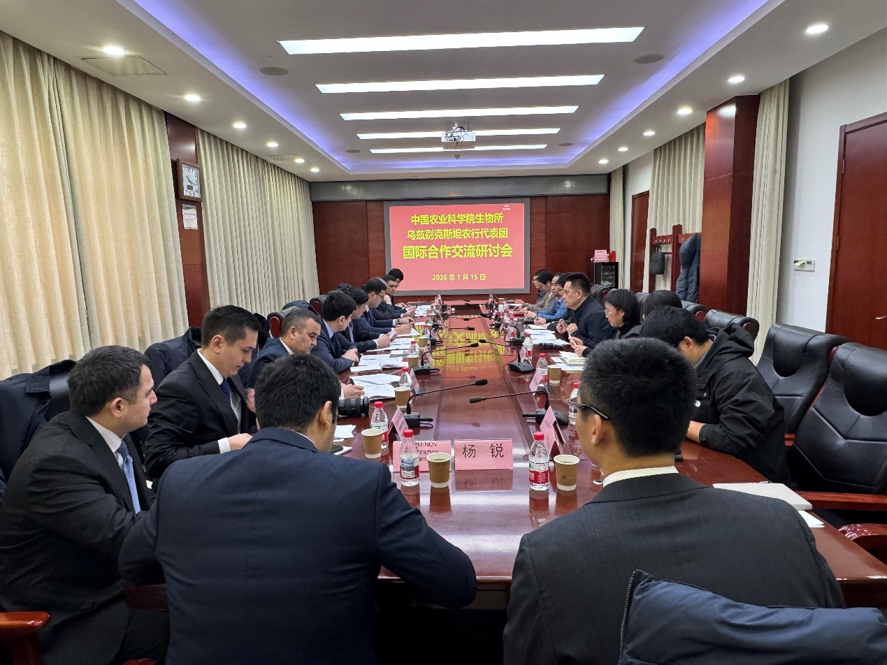 1月15日,乌兹别克斯坦农业银行行长KAKHOROV Erkin Azizjonovich率团一行10人访问生物所,双方围绕深化中乌农业生物技术领域的科研协作与战略对接进行深入交流。周志刚副所长主持交流活动,相关职能部门负责人及科研代表共同参与座谈。