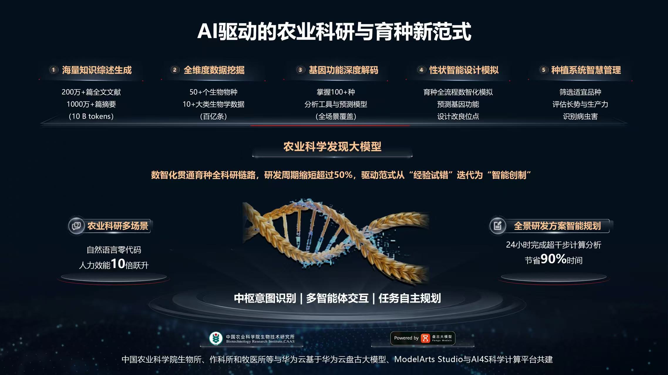 9月18-20日,第十届华为全联接大会(HUAWEI CONNECT 2025)在上海召开,中国农业科学院生物技术研究所联合作物科学研究所、北京畜牧兽医研究所与华为技术有限公司团队深度联创的农业科学发现大模型发布系统升级。该模型继今年6月在华为全球开发者大会上首次发布后,进一步实现了能力集成跃升,中枢意图识别,多智能体交互,任务自主规划等功能优化,有效推动了农业生物育种从“经验试错”迈向“智能创制”新范式。