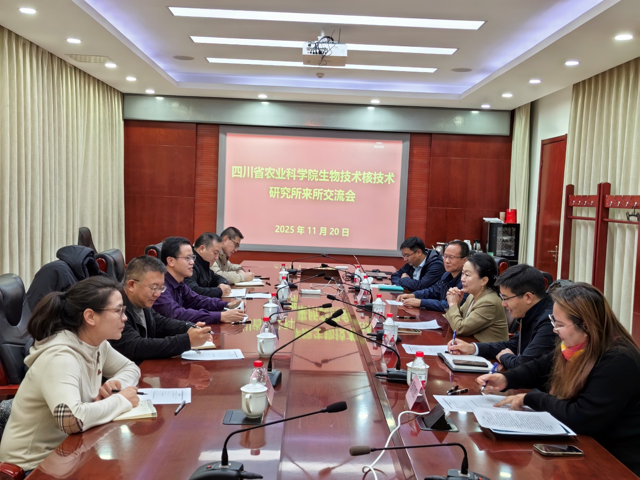 11月20日,四川省农业科学院生物技术核技术研究所(以下简称“生核所”)党委书记魏鹏、所长宋军一行到访生物所,双方围绕党的建设、科技创新、成果转化、人才队伍建设、平台建设等方面展开深入交流,共商协同创新与合作发展。生物所党委书记李红康、副所长郭静利及相关职能部门负责人参加座谈会。